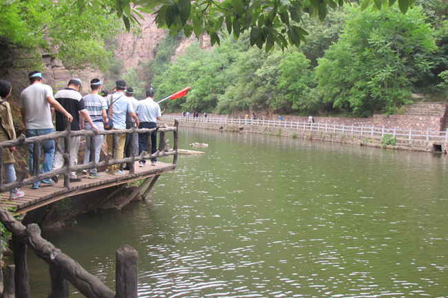 一路上,在宋广明总经理的组织带领下,大家欢歌笑语,热情高涨;游览期间,大家听从导游和领队的指挥,协同出行,互帮互助。刚到龙潭大峡谷景区内,大家都被漂亮的景色深深吸引,特别对龙潭峡内的波痕崖景点情有独钟,波痕崖高度达10米,宽度15米,是崩塌背景下,由于崖壁的整体崩塌,导致原来近于水平产出的崖层直立,层面成为崖面,层面上发育的波痕形成罕见的“波痕崖”景观,鲜红的岩石,优美的纹理,翠绿的植被,充满了诗情画意,让人流连忘返。